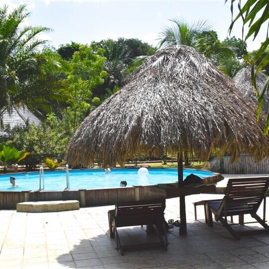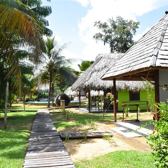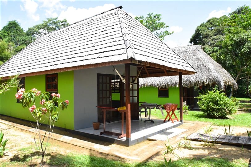 Hotel de Plantage is een ideale uitvalsbasis in het groene, landelijke district Commewijne. Hier vindt u rust en ruimte in een heerlijke omgeving. De prachtige tuin is met zorg aangelegd door de eigenaar Pieter. Toen hij rond 2005 startte met het hotel, verzamelde hij overal zaden van bomen die hij plantte in de tuin. De tuin is nu uitgegroeid tot een tropische oase waar talrijke vogels komen om voedsel te zoeken en te nestelen. Ook aapjes kennen de weg naar Pieter’s tuin inmiddels op hun duimpje. Hier vinden ze een variëteit aan palmvruchten waar ze zo dol op zijn.