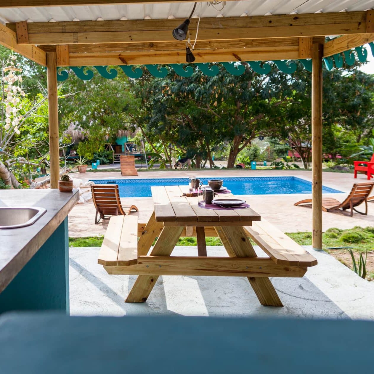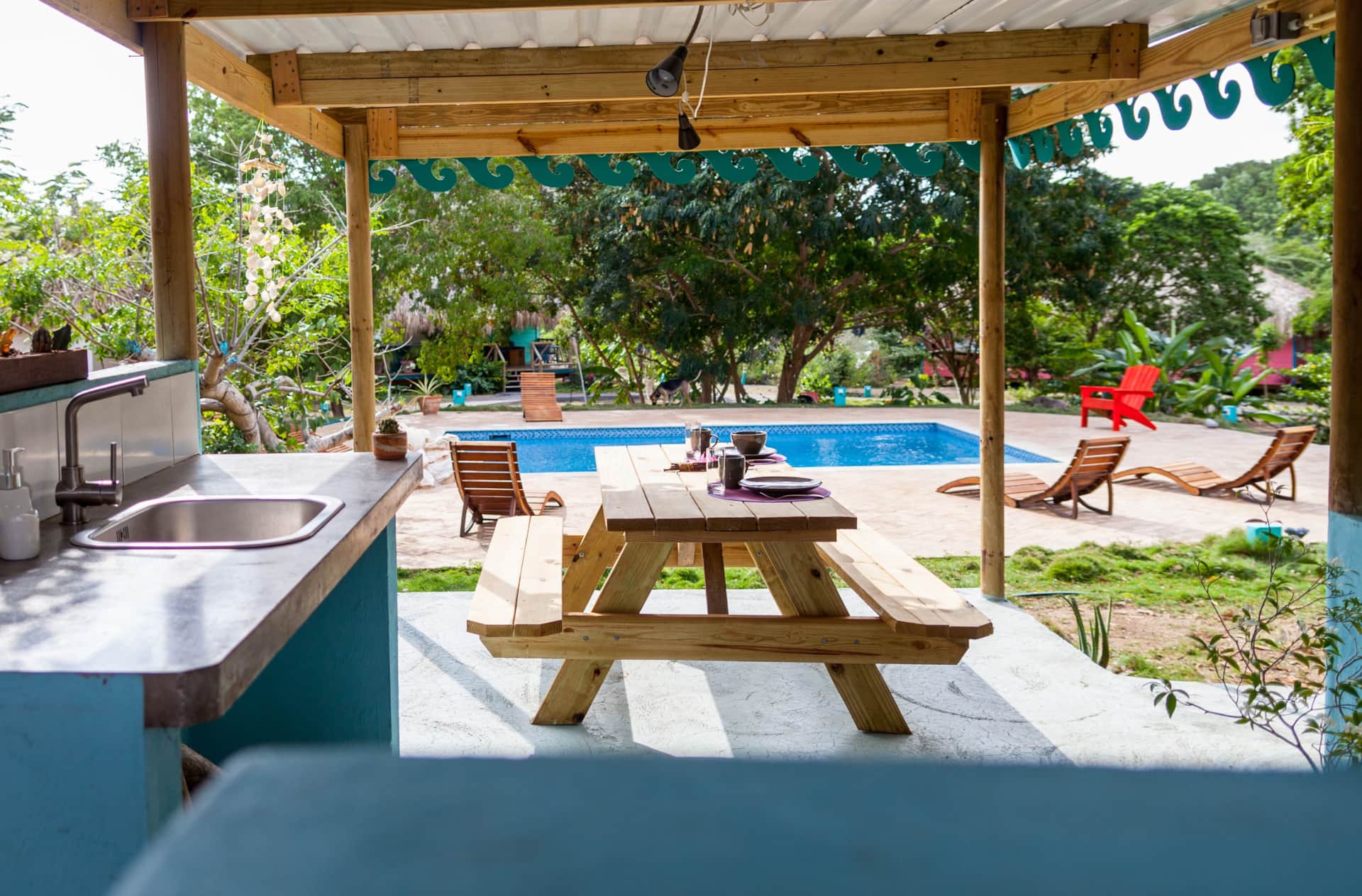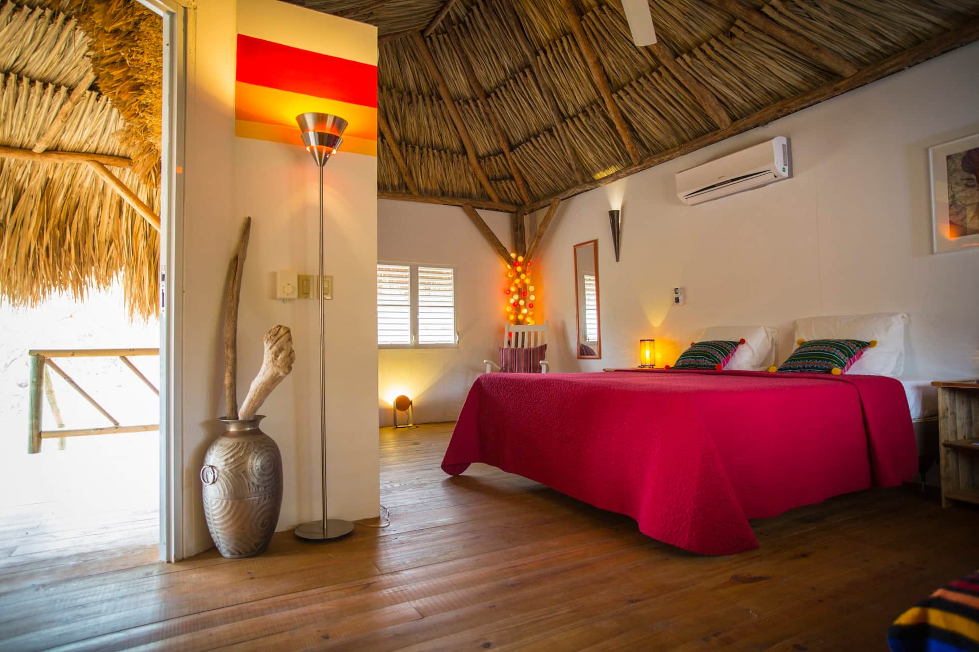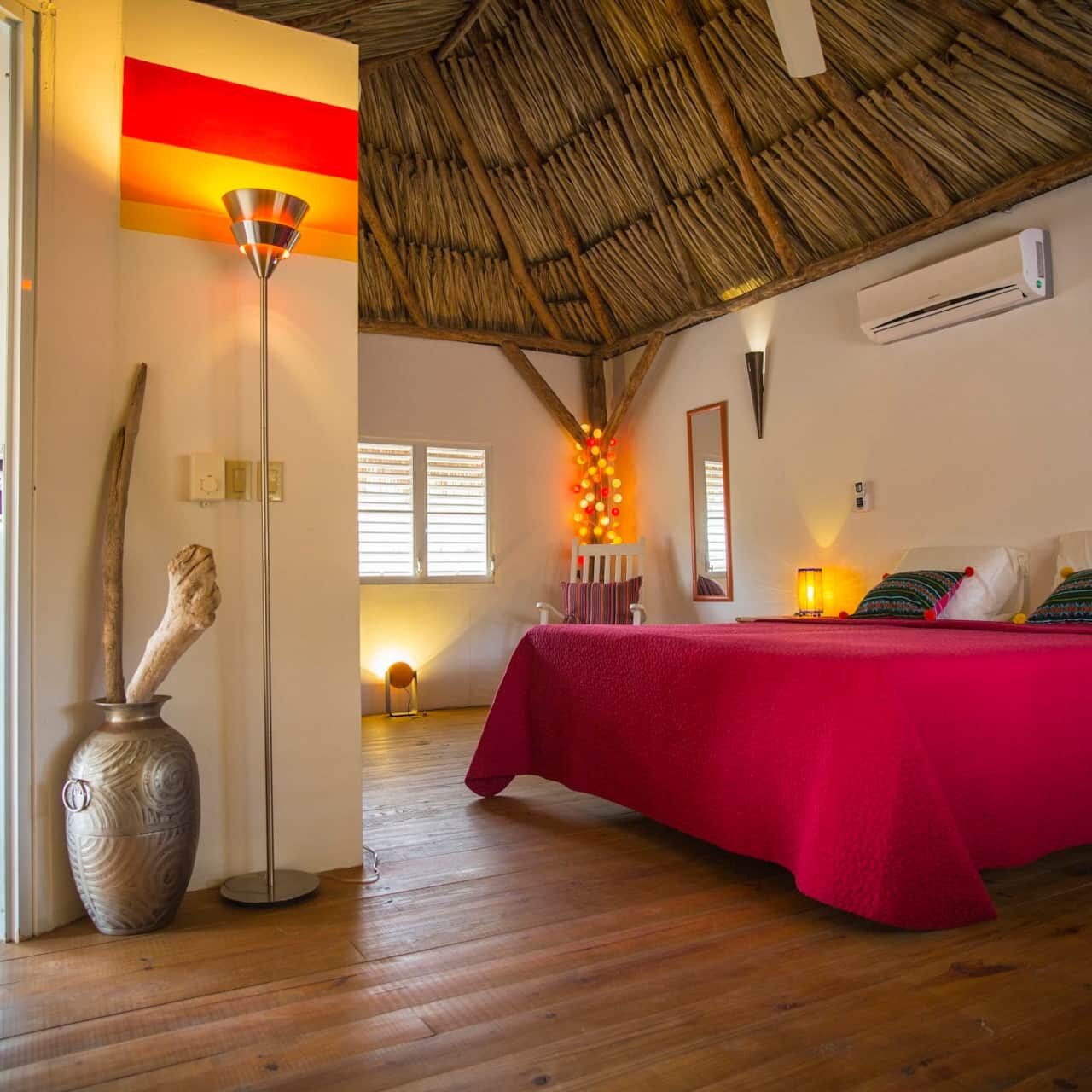 Er zijn zes kleurrijke houten cabana’s (of zg. palapa’s), gebouwd op palen en voorzien van een eigen badkamer en een veranda met kitchenette. Drie huisjes zijn geschikt voor twee tot max. drie personen en hebben één slaapkamer. Daarnaast zijn er twee palapa’s voor vier tot vijf personen. Deze palapa’s hebben twee slaapkamers en zijn ideaal voor gezinnen met kinderen. Een huisje is rolstoeltoegankelijk en heeft een aangepast toilet, wastafel en buitendouche. De accommodaties beschikken verder over airco en plafond ventilatoren, klamboes, een kluisje, telefoon, tv en wifi.