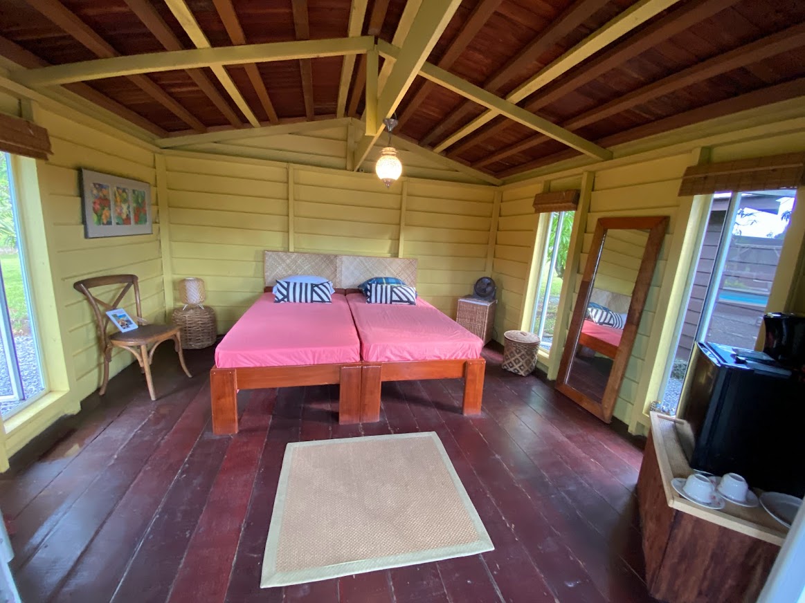 Op een ruim terrein van 1,3 hectare staan een hoofdgebouw met twee 2-persoons slaapkamers, twee badkamers en twee toiletten. Het hoofdgebouw heeft een ruim woonterras aan zowel de voor- als achterzijde. Daarnaast zijn er vier aparte 2-persoons cabana’s op het terrein gebouwd. De cabana’s hebben een eigen veranda en delen een buitendouche en toilet.