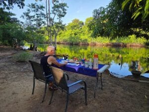 Daarna zijn we naar Wageningen gebracht, waar we een paar dagen in het Maratakka junglekamp waren en daarna nog een dagje naar Bigi Pan. Heerlijke dagen gehad en veel gezien. Na een paar nachten Paramaribo naar Palumeu gevlogen. Wat een heerlijk oord is dit. We hadden een geweldige gids, Henk met zijn indiaanse assistent Jansen, die hele mooie excursies met ons hebben gemaakt. Daarna nog naar Jaw Jaw a Tela, een resort midden in een Maron dorp. Ook hier weer veel gedaan en gezien. Alles was weer perfect op elkaar afgestemd. Daarna nog een kleine week naar een prachtig appartement in Boca Sint Michiel met uitzicht op zee. Al met al weer een ervaring om nooit te vergeten.