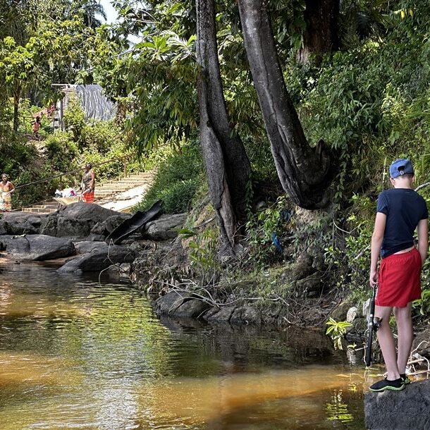 Tijdens uw verblijf is er volop tijd om te zwemmen in de stroomversnellingen, ook een boswandeling en/of dorpswandelingen kunnen worden ingepland. Ga in de avond met de korjaal kaaimannen spotten en bewonder de sterrenhemel. U kunt meehelpen in de keuken bij het bereiden van de maaltijden en er zijn vrouwen die u graag leren hoe zij de pangi’s maken en borduren. Regelmatig zijn er gasten die meedoen met het bakken van cassavebrood, een kalebas workshop volgen of kokosolie leren maken of rijst stampen. Vissen, jagen of iets van de Saramaccaanse taal leren is ook mogelijk, net als pedellen met een traditioneel bootje. Verder kunt u helpen met de dagelijkse activiteiten in het dorp. De activiteiten zijn afhankelijk van uw interesse in overleg af te stemmen. Alles kan, niets moet.