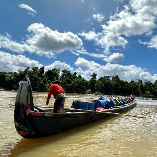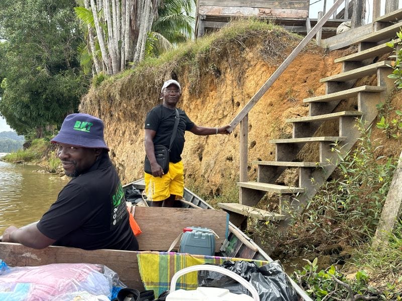 De reis start vroeg in de ochtend, om 07:00 uur vanuit Paramaribo. U vertrekt met de bus over de Wijdenboschbrug, met een prachtig uitzicht over de Surinamerivier. Daarna rijdt u via Commewijne, waar een korte sanitaire stop wordt gemaakt, verder oostwaarts. Tijdens de ongeveer twee uur durende rit richting Albina ziet u het landschap veranderen: van stedelijke drukte naar het weelderige groen van het binnenland.