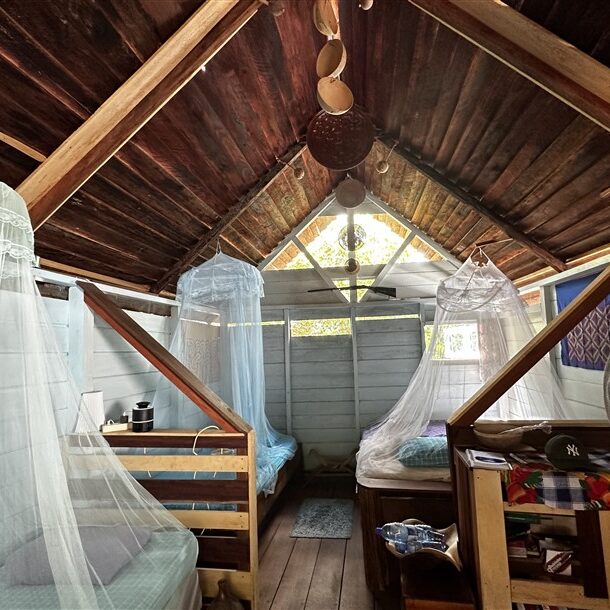- Palulu Paradise: eenvoudig houten huisje met keukentje, douche/toilet (alleen koud water). Boven zijn twee kamers. Indien de tweede kamer verhuurd is, deelt u de faciliteiten. Tegen een toeslag is het mogelijk het hele huisje te huren. Volpension. Evt. tegen bijbetaling van een toeslag is er een luxere 2-persoonscabana verkrijgbaar.