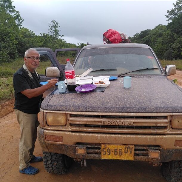 Na de nachtelijke avonturen wordt er ‘s ochtends rustig aan gedaan. Start met een jungle-ontbijtje of fris lekker op bij de kreek. Afhankelijk van het weer en de nachtelijke avonturen, wordt het kamp weer afgebroken om de route te vervolgen naar de tweede bestemming. Na een lange rit over de vaak hobbelige bauxiet weg gaat de reis verder over een zandweg die langs verlaten weilanden van veehouders naar de Goliath kreek leidt. Afhankelijk van de staat van de weg, de dieren die onderweg gespot worden en overig ‘oponthoud’ wordt een kamp bij de kreek gemaakt. Er is kans op katachtigen in dit gebied, in ieder geval zullen er meerdere sporen aangetroffen worden.